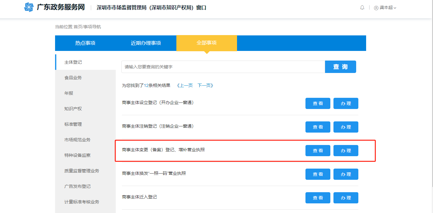 3、找到變更欄目,點(diǎn)擊辦理。