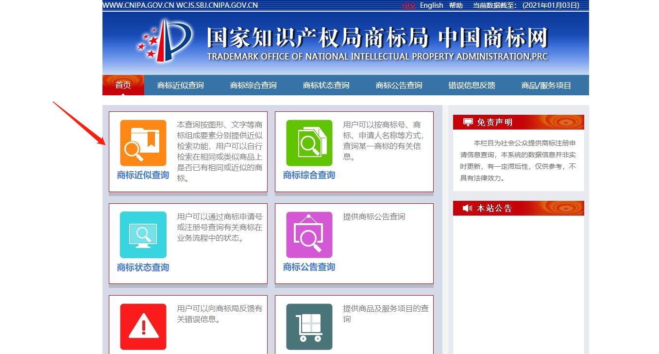 1、設(shè)計好商標(biāo)后,進(jìn)入商標(biāo)局官網(wǎng)http://sbj.cnipa.gov.cn/sbcx/先檢索商標(biāo)。