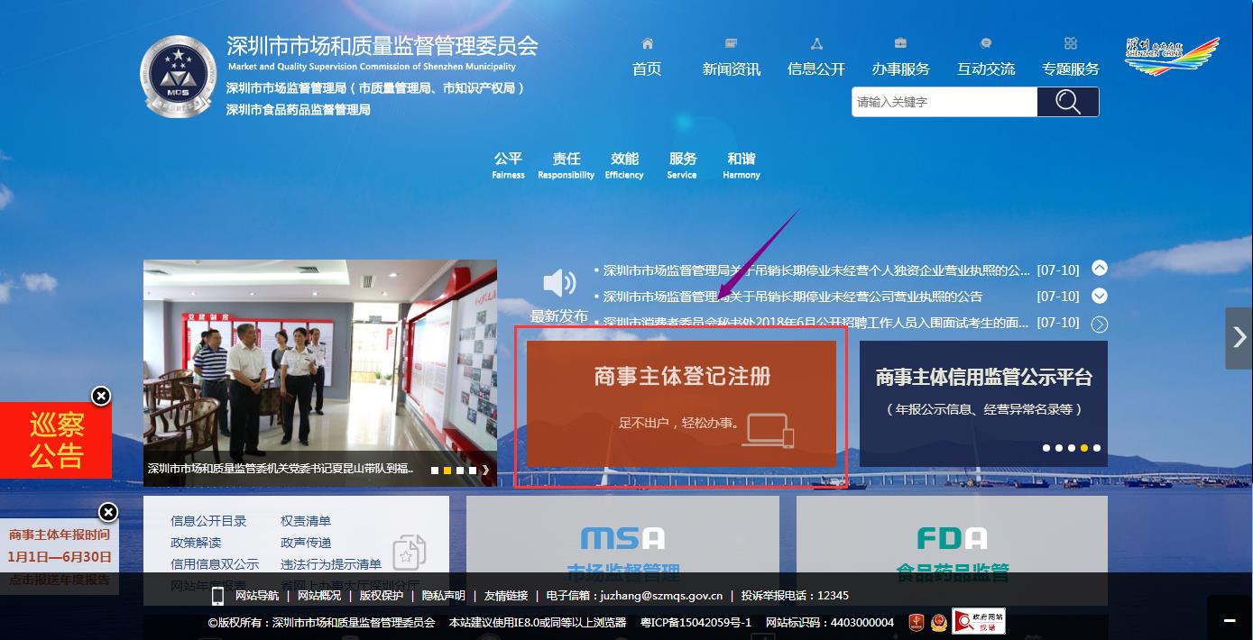 登錄深圳市場監(jiān)督管理局如下圖: