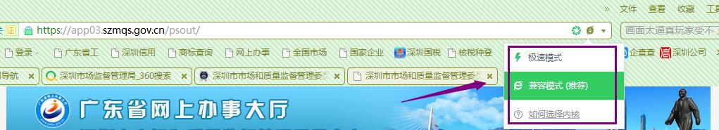 此時則是u盾讀取成功,(注意,如果使用360瀏覽器需要切換極速模式,若極速模式無法讀取u盾,在再次切換成兼容模式;如下圖)