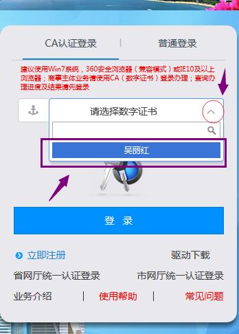 接下來,點擊下拉選項,選擇已經(jīng)讀取到的u盾名稱,點擊下面的登錄:如下圖
